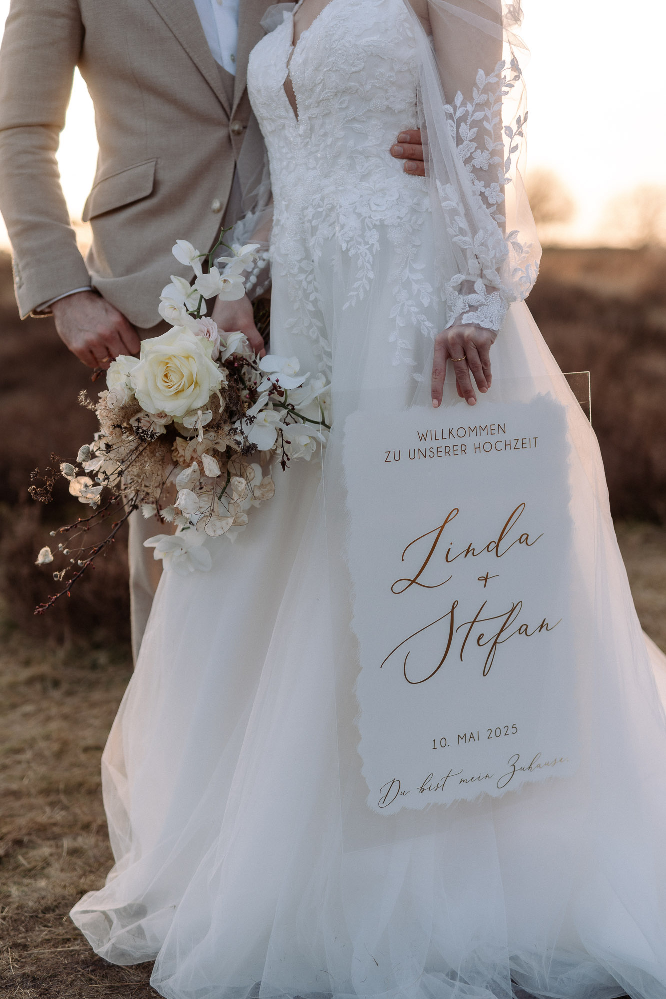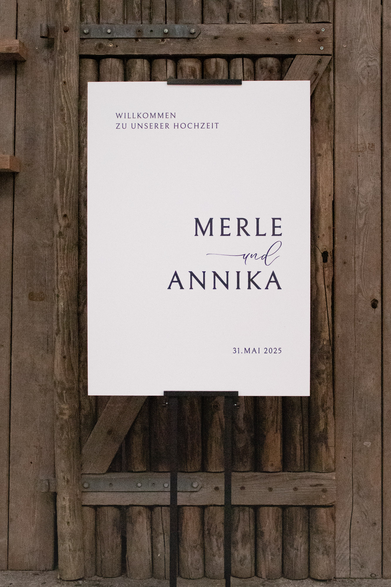 Mit modernen Designs und durchdachter Funktionalität gestalte ich jedes Schild und Schilderset eigens für eure Feier – abgestimmt auf euren Stil und den Charakter eurer Hochzeit.