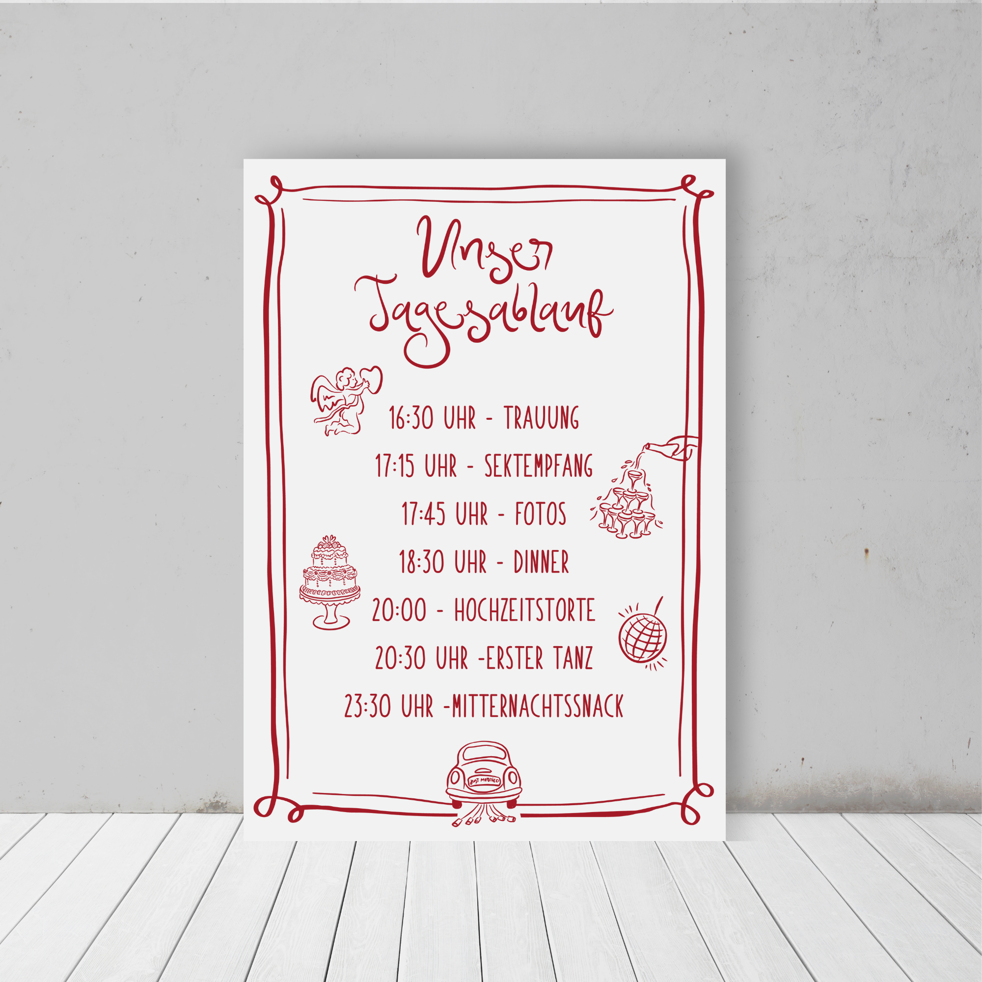 • Hinterlege den Ablauf eurer Feier ganz einfach im Personalisierungsfeld – so gestalten wir euer Schild genau nach euren Vorstellungen!