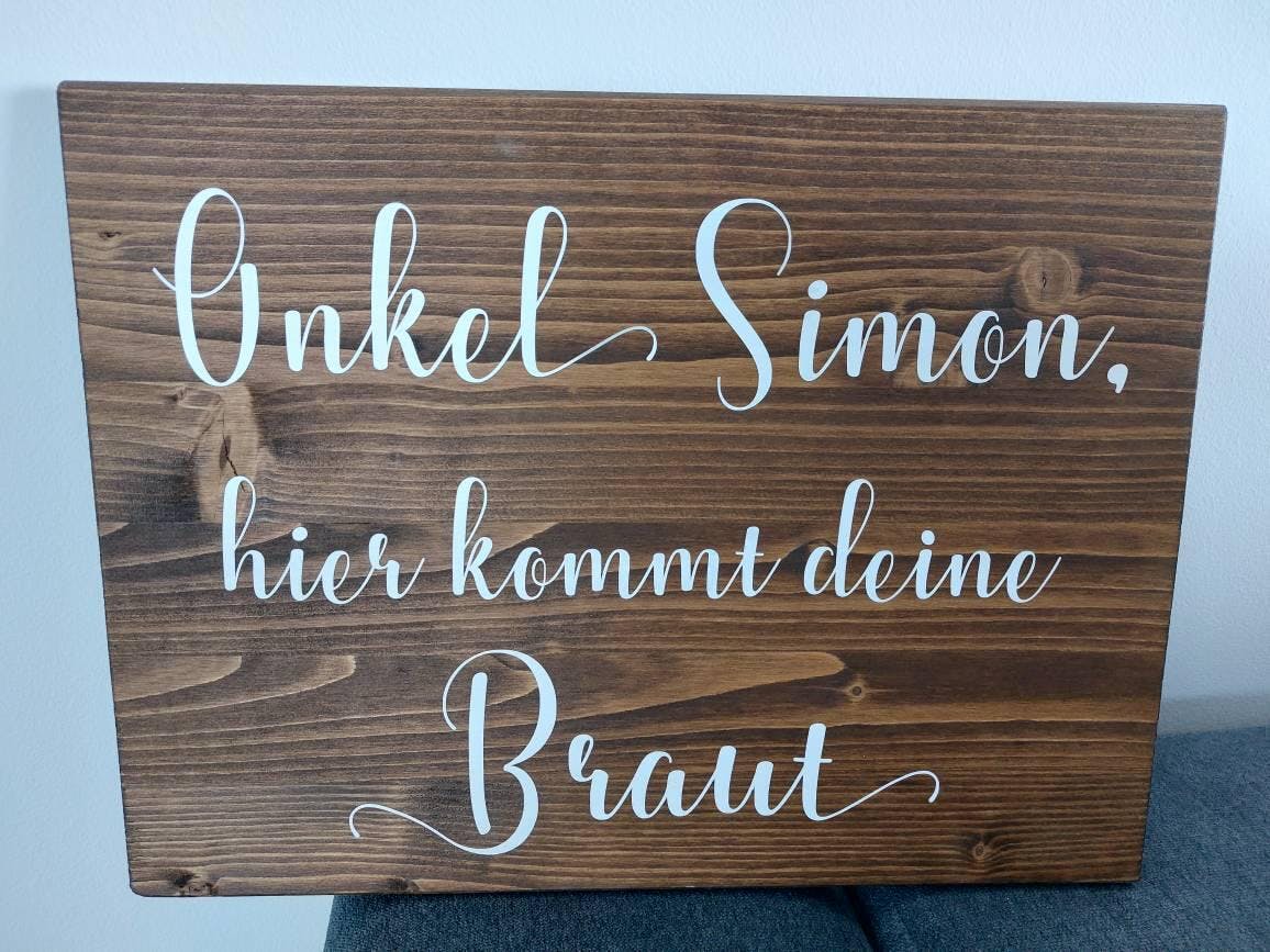Das Schild wurde genau nach unseren Wünschen angefertigt und kam hübsch verpackt im genannten Zeitraum bei uns an. Es war sicherlich ein Highlight unserer Trauung, als unsere Nichte als Überraschung für ihren Onkel vor mir einzog. Vielen Dank!