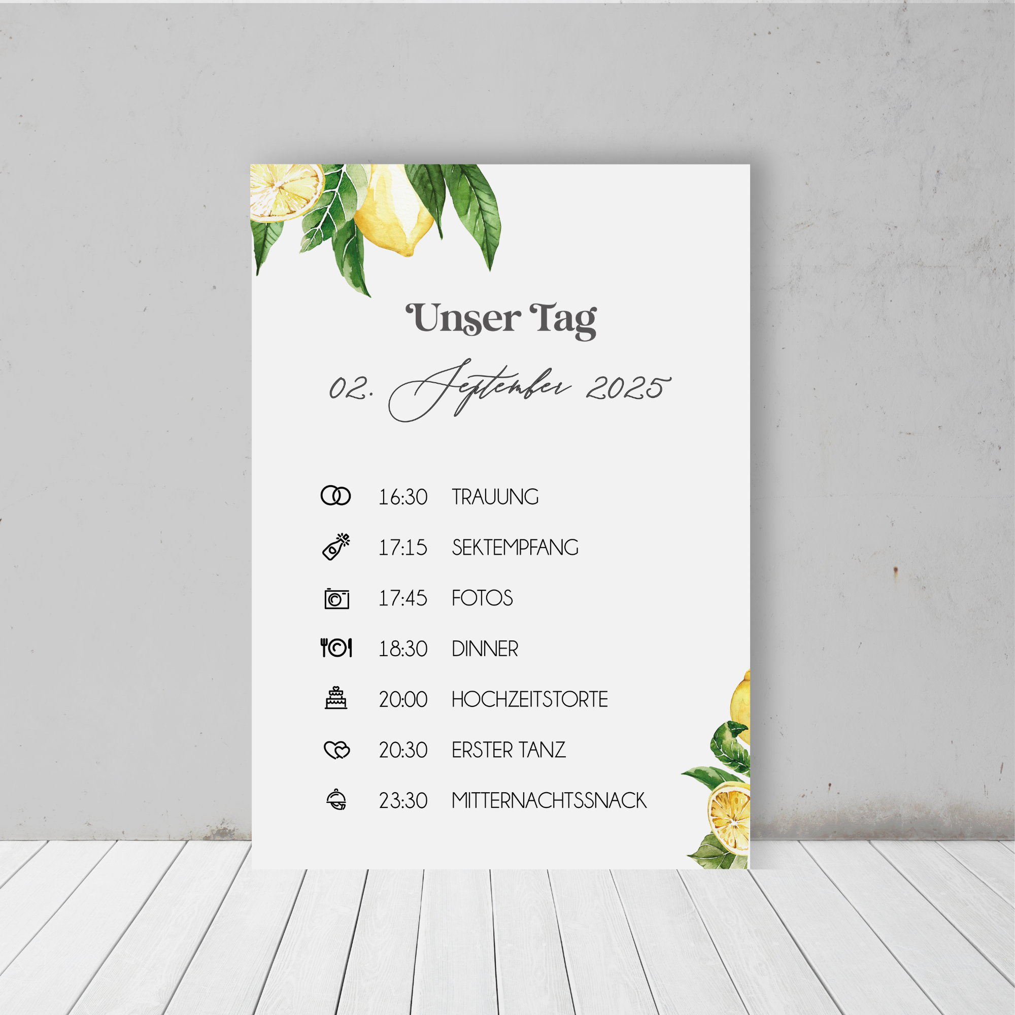 Jedes Schild wird mit Sorgfalt und Liebe zum Detail gefertigt. Dieses Schild aus Hartschaum hilft dabei, den Ablauf der Feier reibungslos und gut organisiert zu gestalten, damit ihr und eure Gäste ein unvergessliches Erlebnis genießen könnt!
