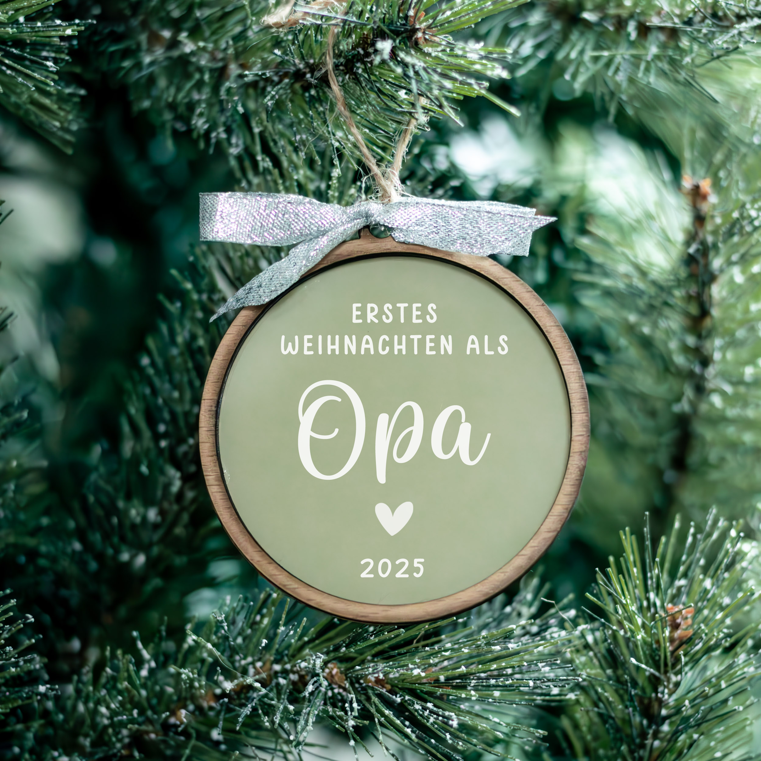 Das erste Weihnachtsfest in einer neuen Rolle ist etwas ganz Besonderes – und mit dem Ornament „Sia“ wird dieser Moment unvergesslich. Der runde Anhänger (Ø 8 cm) aus Buchenholz, Acrylglas und hochwertiger Vinylfolie wird individuell mit eurer Wunschaufschrift graviert und veredelt – ob Oma & Opa, Oma, Opa, Uroma & Uropa, Uroma oder Uropa. So entsteht ein Erinnerungsstück, das jedes Jahr aufs Neue Freude schenkt.