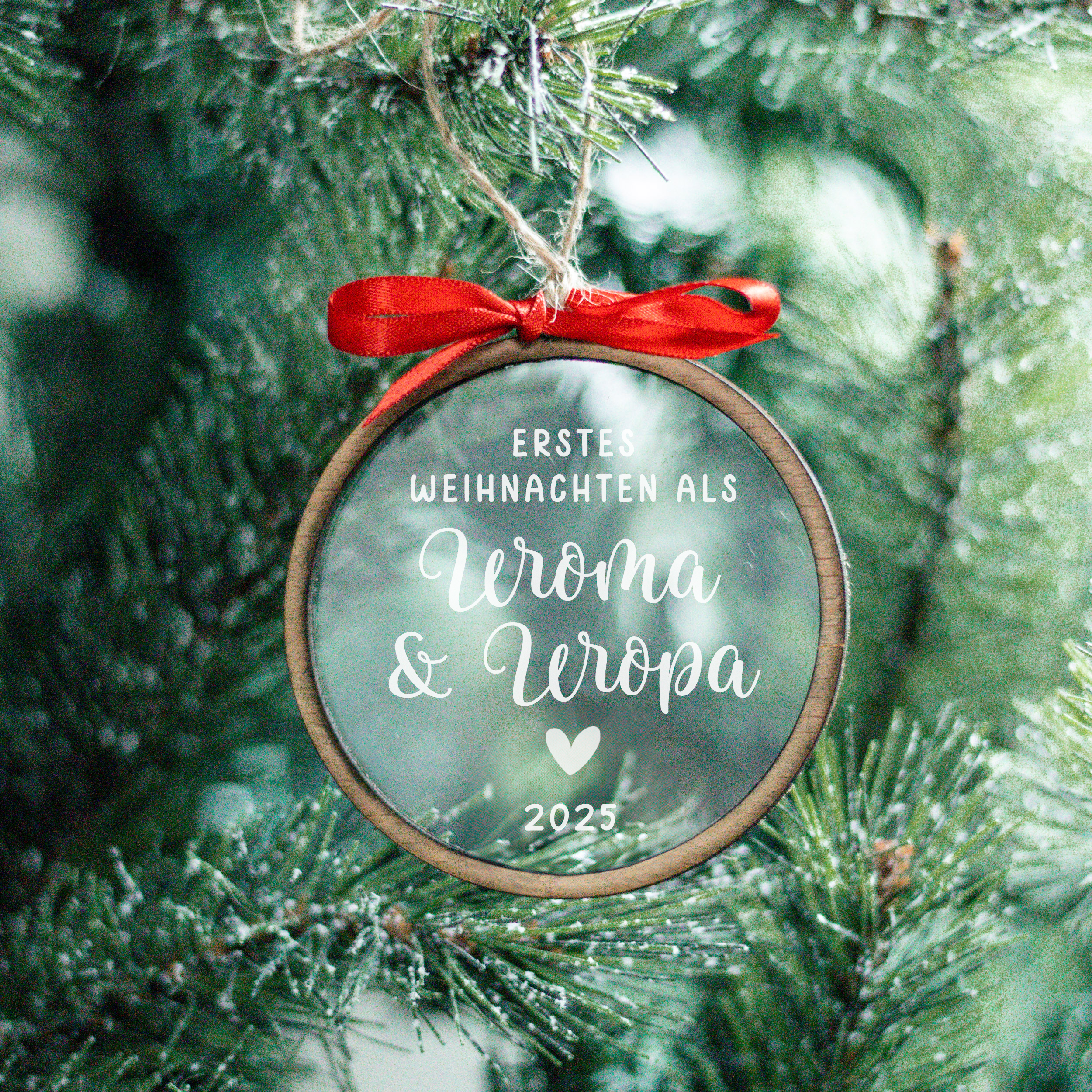 Das erste Weihnachtsfest in einer neuen Rolle ist etwas ganz Besonderes – und mit dem Ornament „Sia“ wird dieser Moment unvergesslich. Der runde Anhänger (Ø 8 cm) aus Buchenholz, Acrylglas und hochwertiger Vinylfolie wird individuell mit eurer Wunschaufschrift graviert und veredelt – ob Oma & Opa, Oma, Opa, Uroma & Uropa, Uroma oder Uropa. So entsteht ein Erinnerungsstück, das jedes Jahr aufs Neue Freude schenkt.