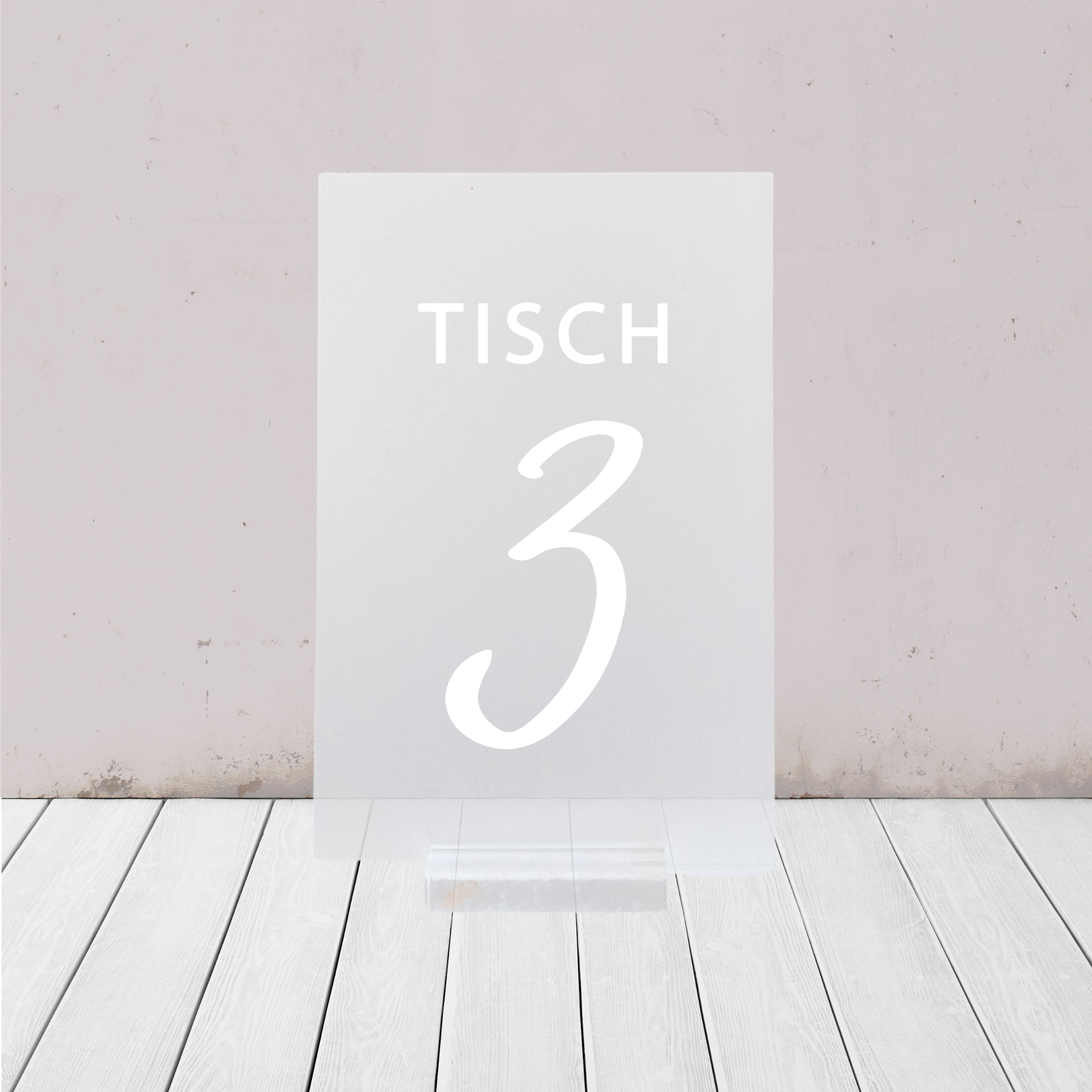 Jedes Schild wird mit Sorgfalt und Liebe zum Detail gefertigt. Empfangt eure Gäste stilvoll mit einem hochwertigen Tischnummern aus Acryl – modern, elegant und vielseitig – ideal für euren großen Tag.