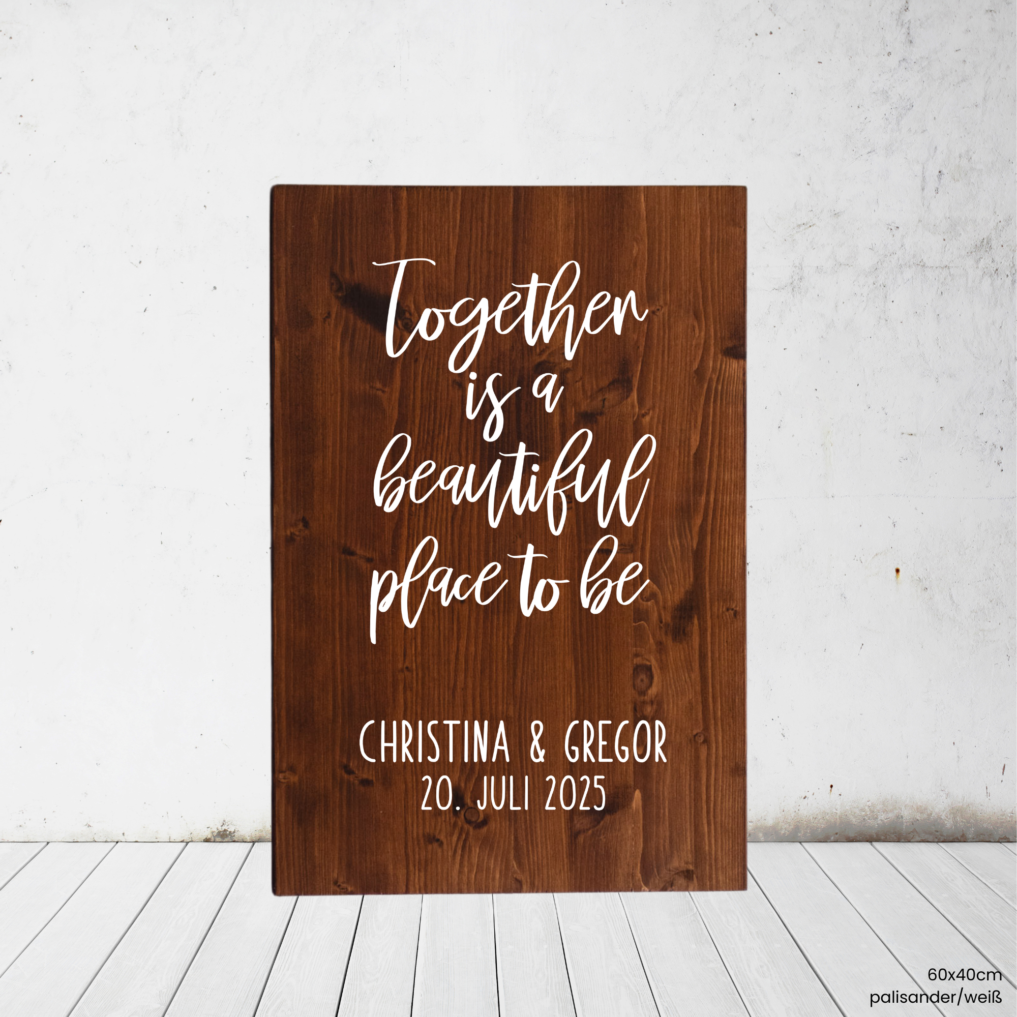 Jedes Schild wird mit Sorgfalt und Liebe zum Detail gefertigt. Empfangt eure Gäste direkt zu eurer Hochzeit mit einem stilvollen Willkommensschild aus Leimholz – dem absoluten Klassiker der Hochzeitsschilder.