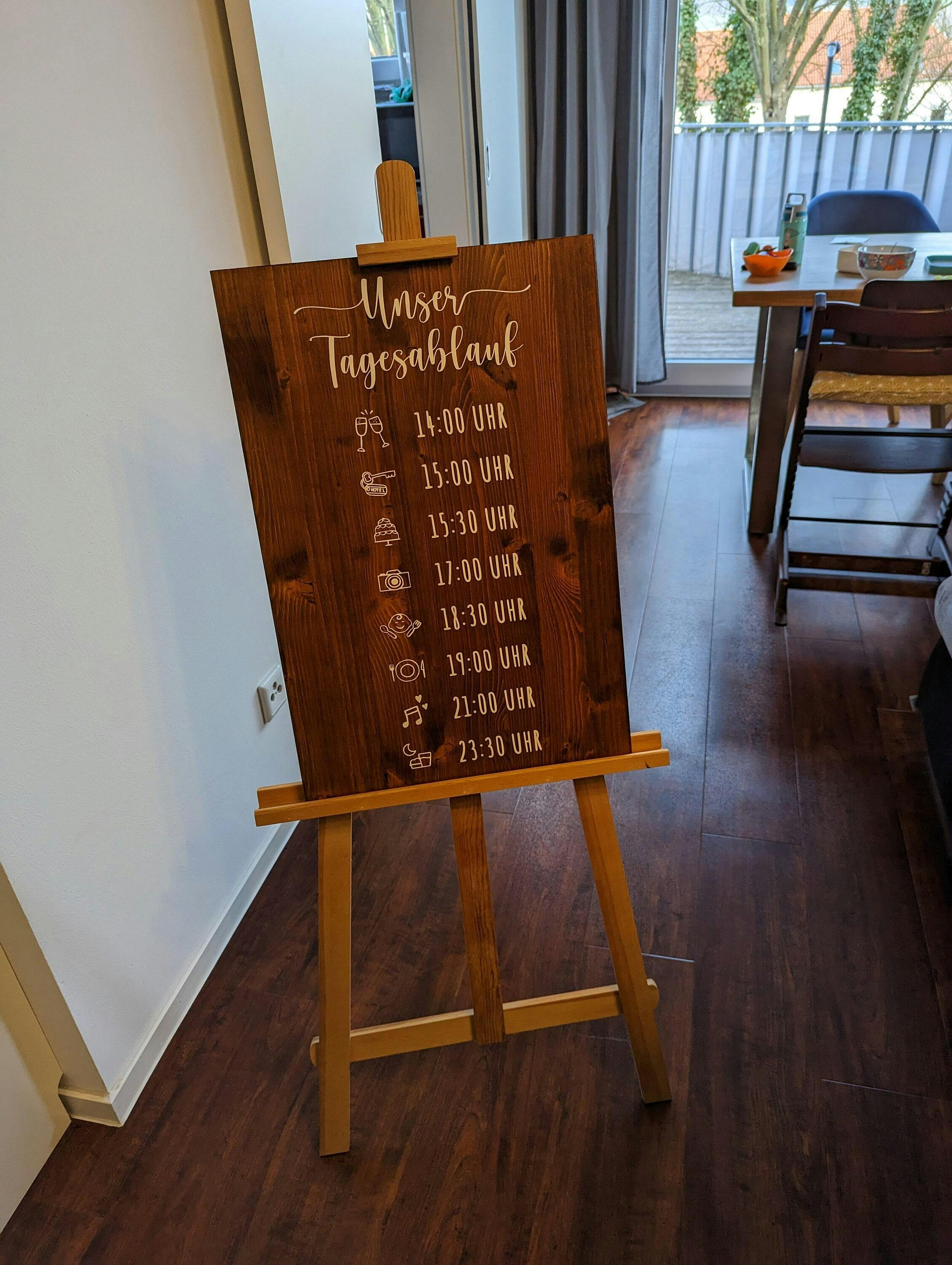 Sehr schönes Holzschild, dass wir für unser Programm für die Hochzeit gekauft haben. Auf unsere Personalisierungswünsche wurde auch super eingegangen!