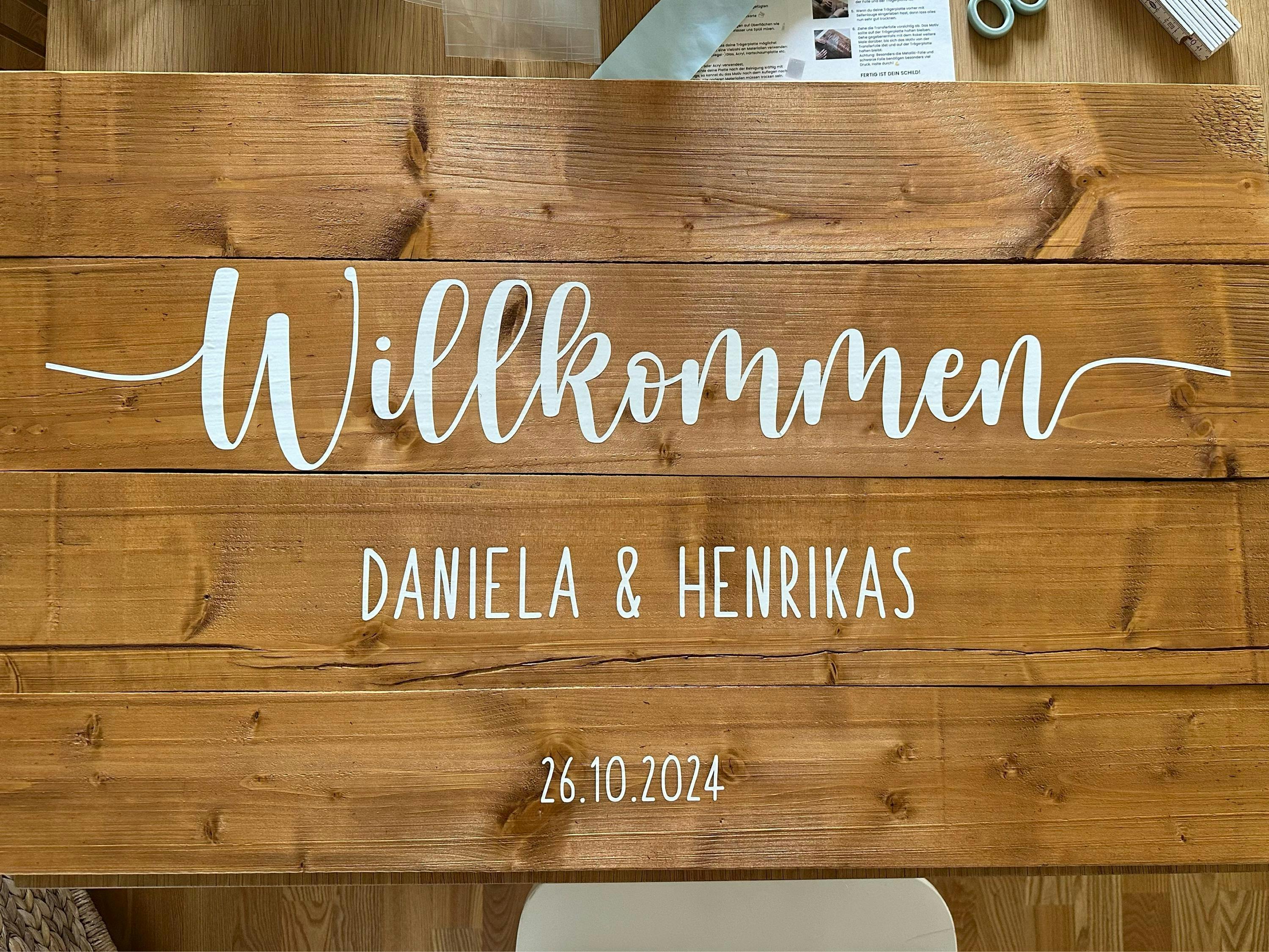 Das Schild wurde genau nach unseren Wünschen angefertigt und kam hübsch verpackt im genannten Zeitraum bei uns an. Es war sicherlich ein Highlight unserer Trauung, als unsere Nichte als Überraschung für ihren Onkel vor mir einzog. Vielen Dank!