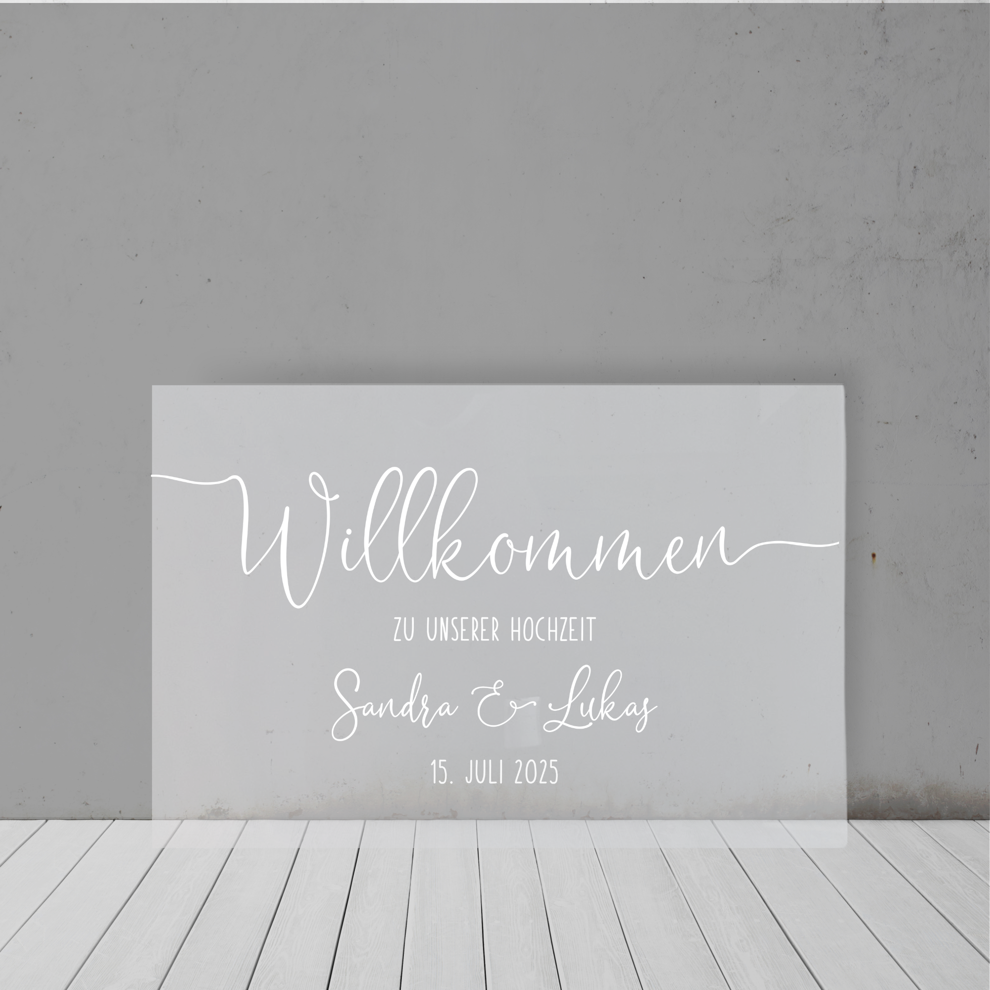 1. Standard: Die Acrylplatte ist transparent, weiß oder satiniert – je nachdem, welcher Look am besten zu eurem Konzept passt.