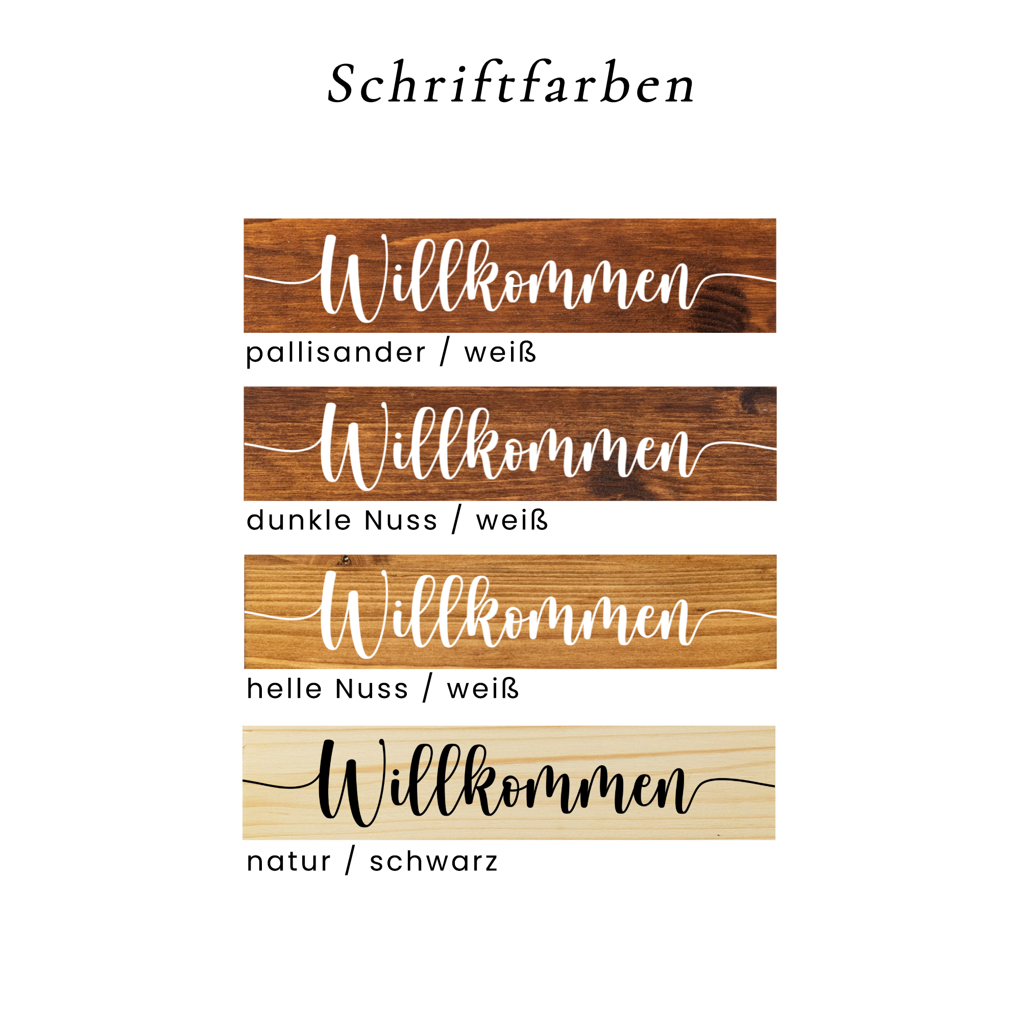 Wählt einfach Material, Farbe und Schriftart, und wir fertigen euer Schild nach der Bestellung für euch.
